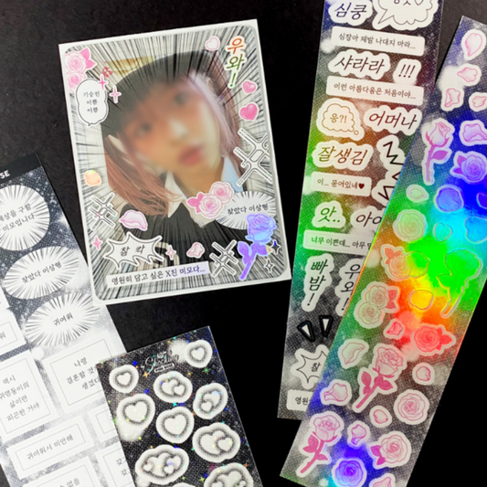 Shocking Pink Rose Love Light Black and White Manga Sticker [3 vars]